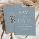 Announce your upcoming nuptials in style with our elegant, modern QR code save the date card. The non-photo save the date features "Save the Date" in white serif and script fonts with a dusty blue background. Personalize the front of the save the date card by adding your names, wedding date, wedding location, and other wedding details. The minimal save the date card reverses to feature your custom QR code with wedding website and custom text. Perfect save the date for both modern formal and casual weddings!