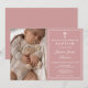 Modern Elegant Dusty Rose Pink Photo Baptism Invitation