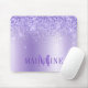 Modern Elegant Fashionable and Trendy Violet Purple Glitter Mouse Pad personalized with your Monogram Initial and Name.