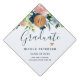 Blush pink, ivory peach, and navy blue peony boho chic flowers bouquets with foliage, a small graduate cap, and a faux metallic gold copper monogrammed circle making a modern girly glam graduation cap topper with a trendy chic fully editable typography script over a clear white (changeable colour) background. +++++++++++++ Easy to personalize with graduate's photo, name, monogram initial, school and graduation year!