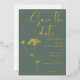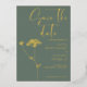 Modern elegant gold foil design . Simple modern handwritten typography in gold foil, stunning sage green background and adding to it subtle floral touch - sketch of Queen Anne's Lace. You can personalize the wording, font style, colour and size of this invitation card. Match items available in collection