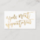 Modern elegant gold foil script typography white with your next appointment written in a modern and stylish script calligraphy. Perfect for beauty salon, hair stylist and makeup artists.