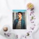Modern graduation announcement card featuring a simple and masculine design with "Graduate" in large bold typography along with the graduate's name, year and school name over your favourite full bleed vertical photo. All text on the front is in real gold foil. The backside has a square picture with your personal message below in a navy blue serif font over a white background.
