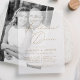 Elevate your pre-wedding celebration with this modern vellum rehearsal dinner invitation, featuring "Rehearsal Dinner" in an elegant gold calligraphy script on a sheer vellum background for a refined and sophisticated look. Customize it with your names, date, rehearsal details, and dinner information to create a beautifully personalized invitation. Perfect for both casual and formal gatherings, this chic design adds a touch of timeless elegance while ensuring your guests have all the essential details for your special evening.