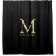 Custom Upload Add Your Photo or Logo Text Elegant Modern Cute Bath & Beauty / Bathroom Accessories / Shower Curtains / Monogram Initial Name Template Gold Text Font Black Shower Curtain.