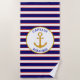 Modern elegant golden anchor on blue, red and white striped beach Towel.
