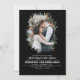 Romantic, elegant greenery silhouette photo overlay black wedding invitations with the two vertical photos.