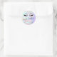 Gorgeous eyelash extensions round sticker design featuring colourful faux holographic texture, lashes and elegant calligraphy font.