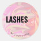 Gorgeous lashes & brows round sticker design featuring colourful faux holographic texture and elegant calligraphy font.