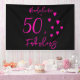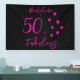 Modern Elegant Hot Pink Hearts Black 50th Birthday Banner