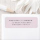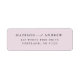 Elegant wedding return address labels featuring the couple's names separated by the word "and" featured in a black calligraphy script on a light lavender purple background. Personalize the modern wedding return address labels with your address below. The labels are perfect to use for weddings, bridal showers, and other special events.
