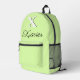A personalized monogram backpack designed in a modern elegant style. This elegant Menthol backpack features a bold white initial 'X' with a black shadow and a customizable name in black script font. Perfect for adding a touch of sophistication and personalization to your everyday style. Ideal for school, work, or casual outings, this backpack combines functionality with a chic design that stands out.