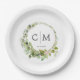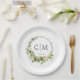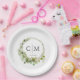 Modern, elegant monogram, eucalyptus wedding paper plate