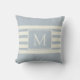 Modern Elegant Monogram Initial Blue White Pattern Throw Pillow. Personalized nautical theme, modern, clean and simple classical design. Reversible design, horizontal and vertical stripes. Dusty blue and ivory stripe with an editable monogram on the front and back of the pillow.