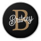 Modern Elegant Monogram Name Black Gold Script Ceramic Knob