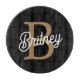 Modern Elegant Monogram Name Black Gold Script Cutting Board