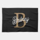 Modern Elegant Monogram Name Black Gold Script Kitchen Towel