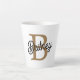 Modern Elegant Monogram Name Black Gold Script Latte Mug