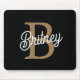 Modern Elegant Monogram Name Black Gold Script Mouse Pad