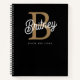 Modern Elegant Monogram Name Black Gold Script Notebook