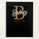 Modern Elegant Monogram Name Black Gold Script Planner