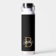 Modern Elegant Monogram Name Black Gold Script Water Bottle