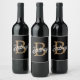 Modern Elegant Monogram Name Black Gold Script Wine Label