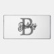 Modern Elegant Monogram Name Black Grey Script Desk Mat