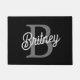 Modern Elegant Monogram Name Black Grey Script Doormat