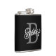 Modern Elegant Monogram Name Black Grey Script Hip Flask