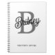Modern Elegant Monogram Name Black Grey Script Notebook