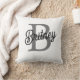 Modern Elegant Monogram Name Black Grey Script Throw Pillow