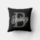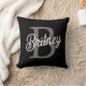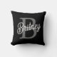 Modern Elegant Monogram Name Black Grey Script Throw Pillow