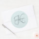 Modern Elegant Monogram Script Aqua Blue Classic Round Sticker
