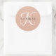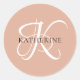 Modern Elegant Monogram Script Blush Pink Classic Round Sticker