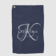 Modern Elegant Monogram Script Navy Blue Golf Towel
