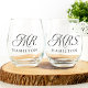 Elevate your toasts with our stunning set of stemless wine glasses featuring modern black typography blending calligraphy and serif lettering, showcasing "Mr." and "Mrs." Personalize them with your last name in sleek black for an extra touch of elegance. Perfect for weddings, bridal showers, or holidays, these glasses are more than glassware—they're cherished keepsakes that will symbolize enduring love for years to come. Cheers to a lifetime of shared joy and unforgettable moments!