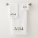 Modern Elegant Newlywed Black Gold White Monogram Bath Towel Set