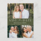 Announce your wedding date with this stylish, modern photo save the date postcard. The design features three of your favourite engagement photos with "Save the Date" displayed in white serif and script fonts against an olive green background. Personalize the front of the minimalist save the date announcements by adding your names, date, and wedding location. The save the date postcard reverses to display your return address and wedding details. The simple save the date announcement is perfect for any wedding theme.