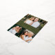 Announce your wedding date with this stylish foil save the date postcard. The design features three of your favourite engagement photos with "Save the Date" displayed in gold foil lettering and an olive green background. Personalize the front of the minimalist save the date postcard by adding your names, date, and wedding location. The save the date postcard reverses to display your return address and wedding details. The multi-photo save the date postcard is perfect for any wedding theme.