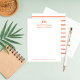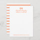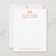Stylish professional note card stationery design that is perfect for a small business owner or employee features the first and last name initials, the name in modern calligraphy script with classic and elegant text that can be personalized with a job title or business name, as well as company or contact information. Sleek horizontal stripes (removable) dress up the back of the card. Orange and white colours can be modified.