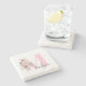Modern Elegant Pink Floral Initial Name Monogram Stone Coaster
