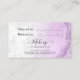 Elegant and stylish makeup artist referral card featuring faux purple glitter marble texture, white marble texture and elegant calligraphy font.
