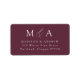 Elegant wedding return address labels featuring the couple's monogram initials separated by an ampersand featured in white calligraphy script on a purple background. Personalize the monogram wedding return address labels with your address below. The labels are perfect to use for weddings, bridal showers, and other special events.