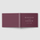 Elegant wedding guestbook featuring your names and wedding date in white lettering with a purple background. Personalize the spine of the simple wedding guest book with your married name and wedding date.