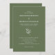 This elegant, simple wedding invitation features flower and text in white with delicate Sage Green palette at the background.