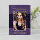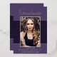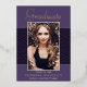 A unique photo graduation announcement card, featuring design elements of elegant handwritten style script. The word "Graduate" and the graduates name in real foil (foil colour options are gold, silver and rose). The graduates photo is thinly edged in a white border and decorative wavy trim. The design is complimented with a background in shades of purple and violet. The back of the card offers a personalized announcement text space for that special graduate. To see more items like this, visit my store here at "www.Zazzle.com/LakeViewCardCo". Thanks