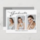 Modern Elegant Script | 3 Photo Grad Announcement Postcard
