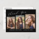 This modern elegant 3 photo graduation "Thank You" postcard, features design elements of modern text fused with elegant calligraphy script. Your grad photos are displayed on the front of the card while the back of the card offers personalized text space for a thank you message or can be left blank if you wish to handwrite your message. Backgrounds are regal black and white or easily customize these to colours of your choice.
