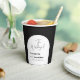 modern elegant script black and white arch wedding paper cups